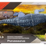 Purussaurus minder om en gigantisk alligator med lang snude og skarpe tænder. Denne realistiske figur fra MATTEL i Dino Trackers-serien gengiver troværdigt filmforlæggets udseende med dybt mørk farve og lysere bug. Et perfekt valg for små og store fans af dinosaurer og JURASSIC WORLD-filmene.