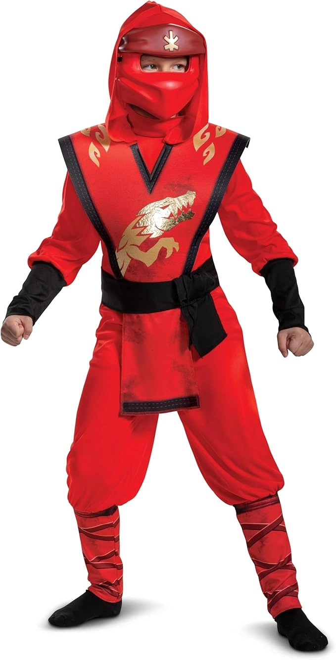 Det officielle LEGO NINJAGO Kai-kostume til børn i alderen 7–8 år er det perfekte valg til fastelavn, maskebal og temafester. Den dybe røde dragt med printet dragesymbol og hætte med maske gengiver trofast helten Kai og giver en markant effekt ved enhver lejlighed.