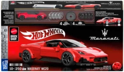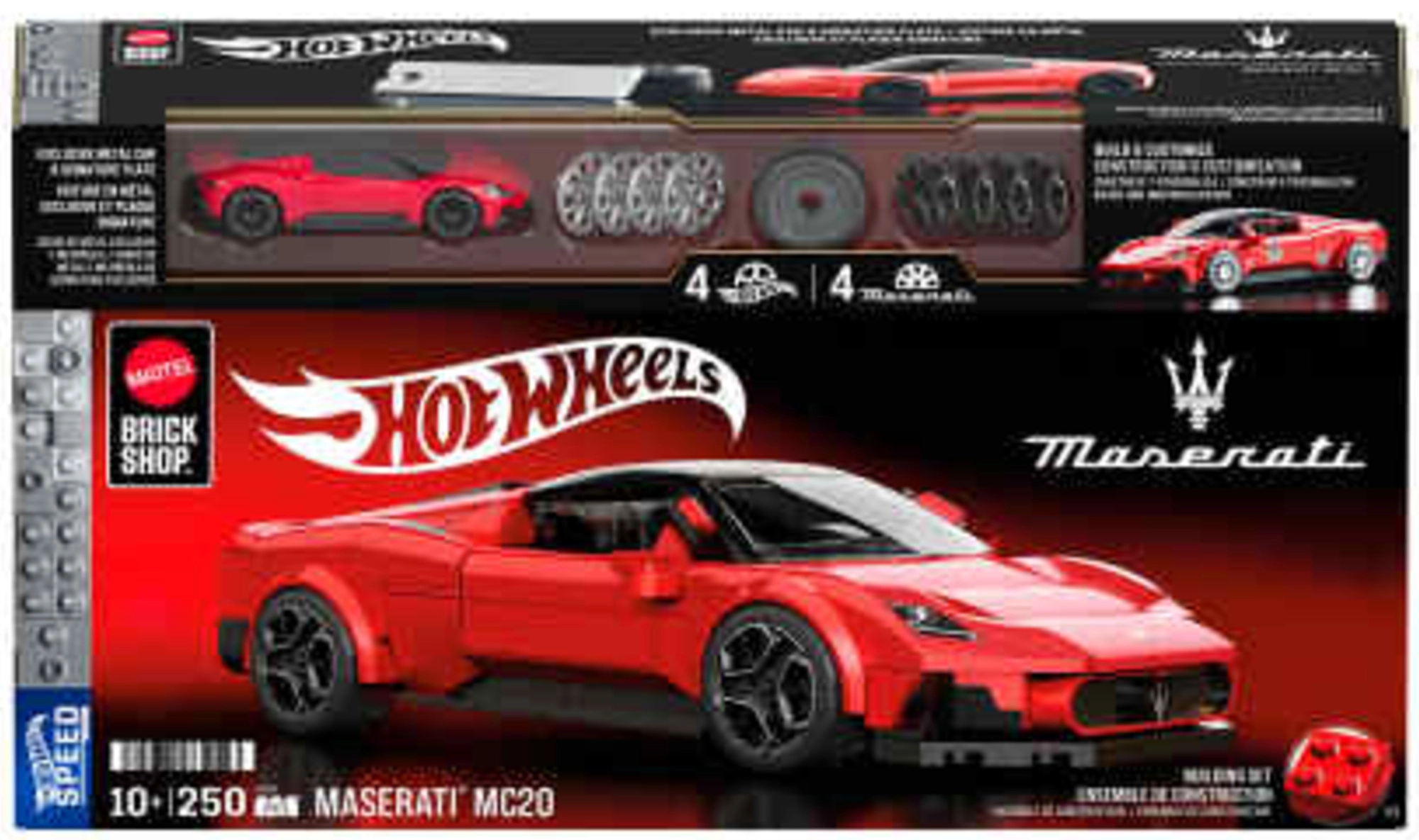 Nyd præcis modellering og fed køreoplevelse i ét. Den stilfulde Maserati MC20 i Hot Wheels Brick Shop-udgaven imponerer med realistiske detaljer, rød karrosseri og funktionelle elementer, der øger oplevelsen både i leg og når den står på hylden.