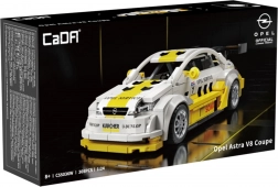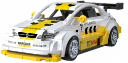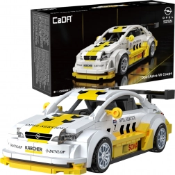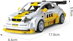 Denne licenserede model af OPEL ASTRA V8 Coupé fra den legendariske DTM-serie leverer et præcist udformet karrosseri i den karakteristiske gul-hvide kombination med sponsorlogoer (fx Dunlop, Kärcher, Sonax). Efter samling måler den 17 × 5,9 × 6,4 cm, så den tager sig flot ud på hylden og giver en behagelig byggeoplevelse.