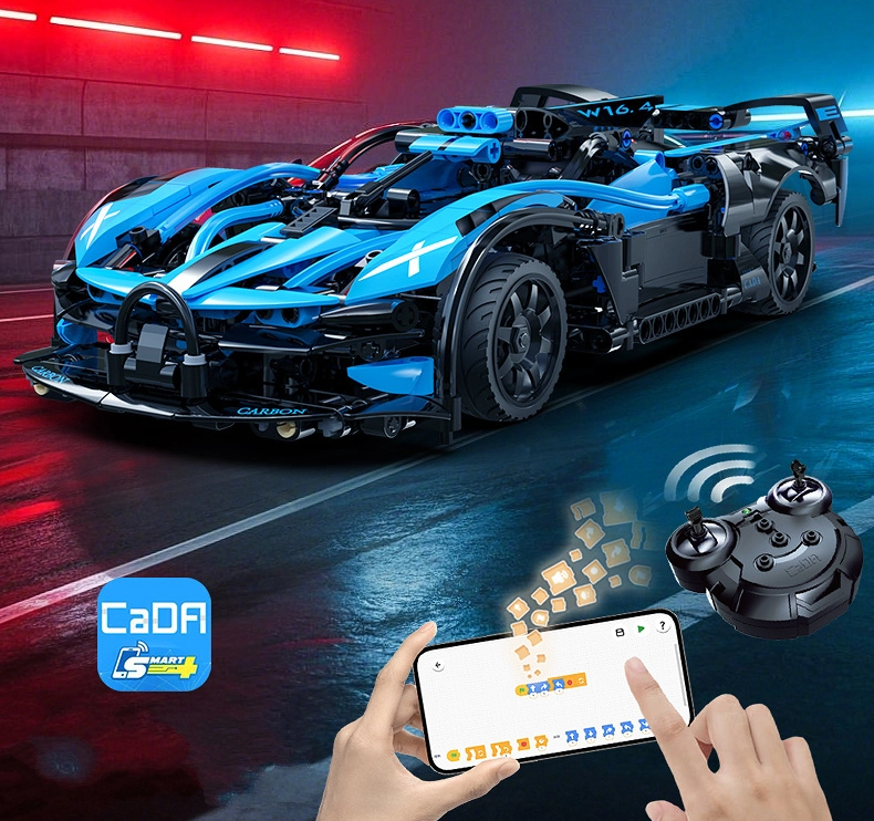Takket være dual kontrol vælger du mellem 2,4 GHz-controller med rækkevidde ca. 25 m og hastighed op til 5,5 km/t eller mobilapp (Android/iOS) med flere tilstande inkl. gyroskop og rittestregning. Print i stedet for klistermærker, aerodynamiske linjer og kvalitetsdele kompatible med andre CaDA-sæt løfter modellen og legen til et højere niveau.