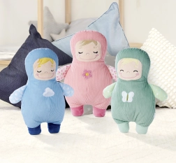 Ekstra blødt materiale og afrundede former er skånsomme mod sart børnehud og indbyder til kram hele dagen.