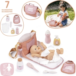 Denne stilfulde SMOBY BABY NURSE-taske er en fantastisk makker for små omsorgsgivere. Med den store klap og gennemtænkte lommer kan du nemt opbevare alle nødvendigheder og trygt tage dem med overalt. Når den foldes ud, bliver tasken til en praktisk puslemåtte, så plejen af “babyen” altid er lige ved hånden.
