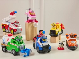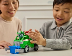 Det grønne køretøj kører jævnt på plane overflader. Børn kan skubbe køretøjet og fortælle deres egne historier fra Paw Patrol-verdenen.