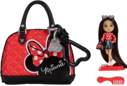 Med følger en stor lyserød taske med Minnie-motiv, som rummer dukken og alle småtingene. Takket være hanken kan børn nemt tage den med overalt. Der medfølger også en stander til udstilling i samlingen samt stilfuldt tilbehør for endnu mere sjov.