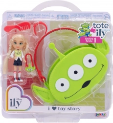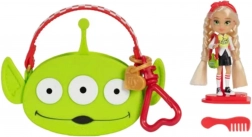 Mini-dukken med langt blond hår er klædt i et moderigtigt sæt med motiv af rumvæsenet fra TOY STORY. Outfittet suppleres af sporty små sko og en mini-håndtaske formet som rumvæsenets hoved. Der medfølger også en stor pink bærbar tote med rumvæsenmotiv, hvor du nemt kan opbevare dukken og hendes småting – ideel til leg både hjemme og på farten.