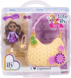 Oplev magien i miniuniverset med dukken inspireret af RAPUNZEL fra den populære serie Disney ILY 4Ever Tote Teenies. Denne søde dukke skiller sig ud med sit lilla outfit med sol, langt hår og en gylden mini-håndtaske, som børn vil elske. Den praktiske lyserøde taske med Rapunzel-motiv rummer både dukken og tilbehøret, så du kan tage den med overalt.