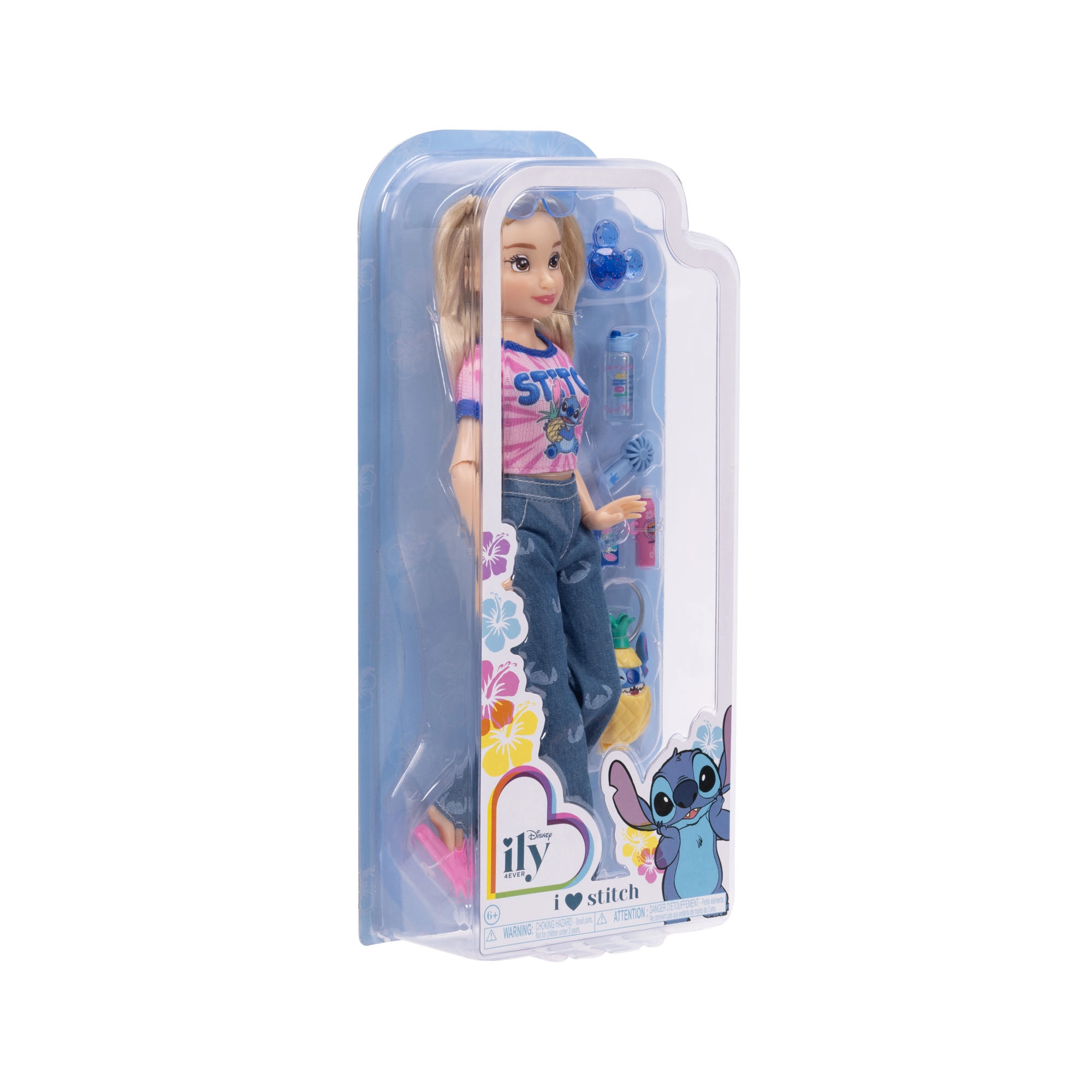 Oplev Disney ILY 4Ever mode-dukken inspireret af den populære helt STITCH. Dukken med langt blond hår har en rosa T-shirt med STITCH-motiv, blå jeans med print og rosa sandaler. Den leddelte konstruktion med 13 artikulationspunkter muliggør realistisk posering og støtter udviklingen af børns fantasi.