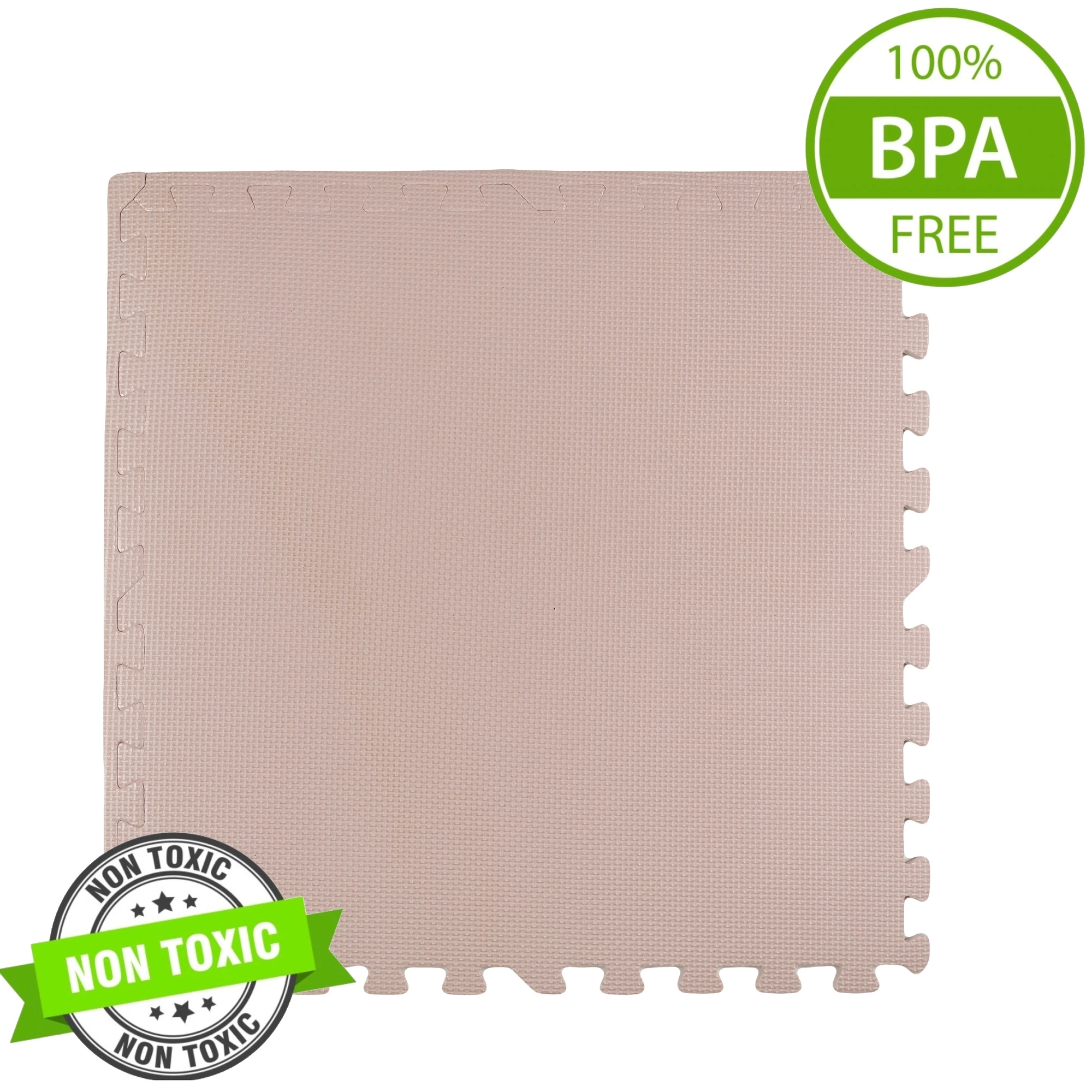Skab et sikkert og behageligt legeområde til dit barn. Underlaget af elastisk EVA-skum absorberer stød, beskytter mod kulde fra hårde gulve og med den skridsikre overflade støtter det de første forsøg på at kravle og gå. Den neutrale, lyserøde farve passer elegant ind i ethvert interiør.