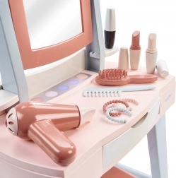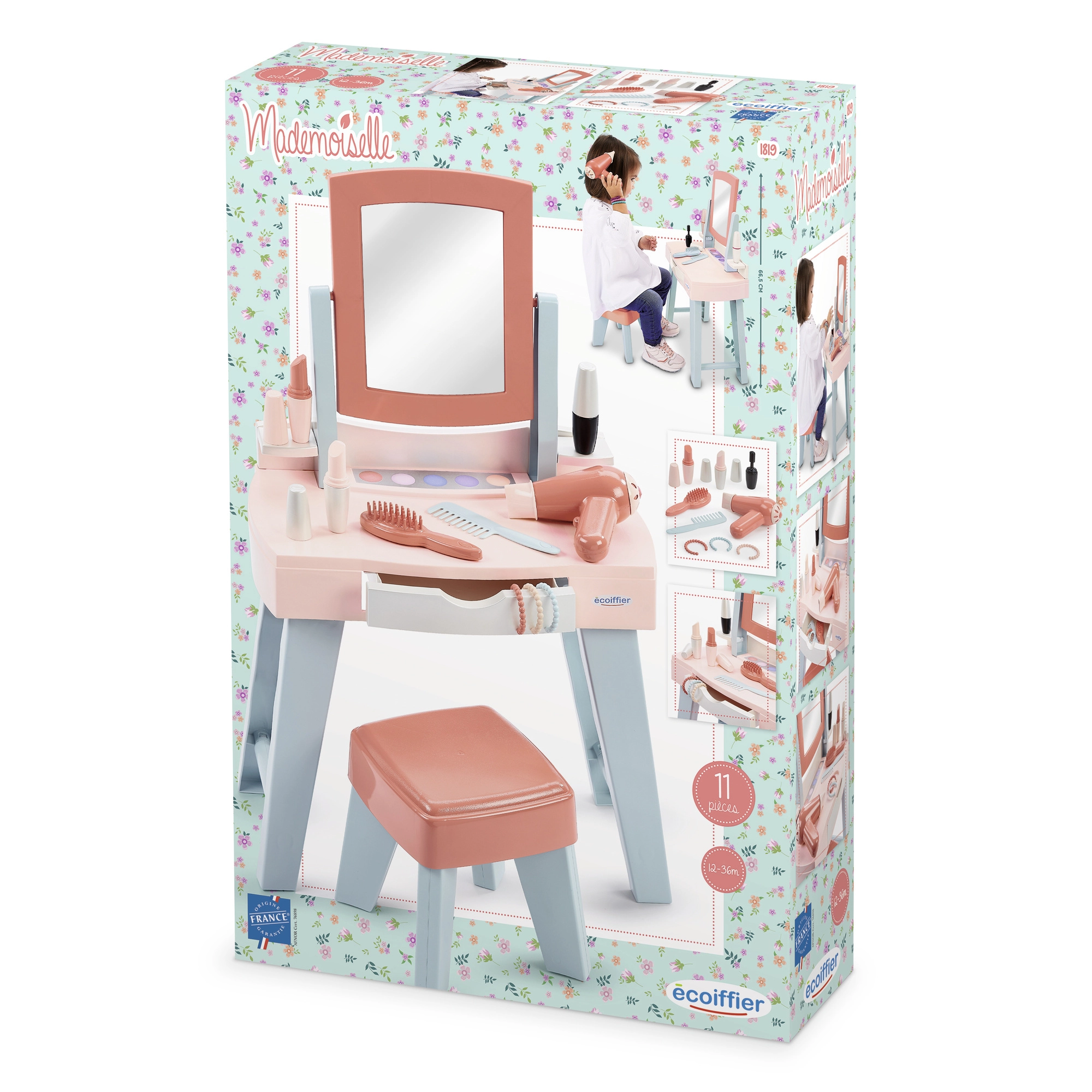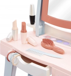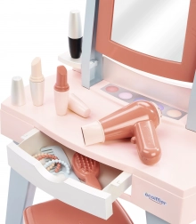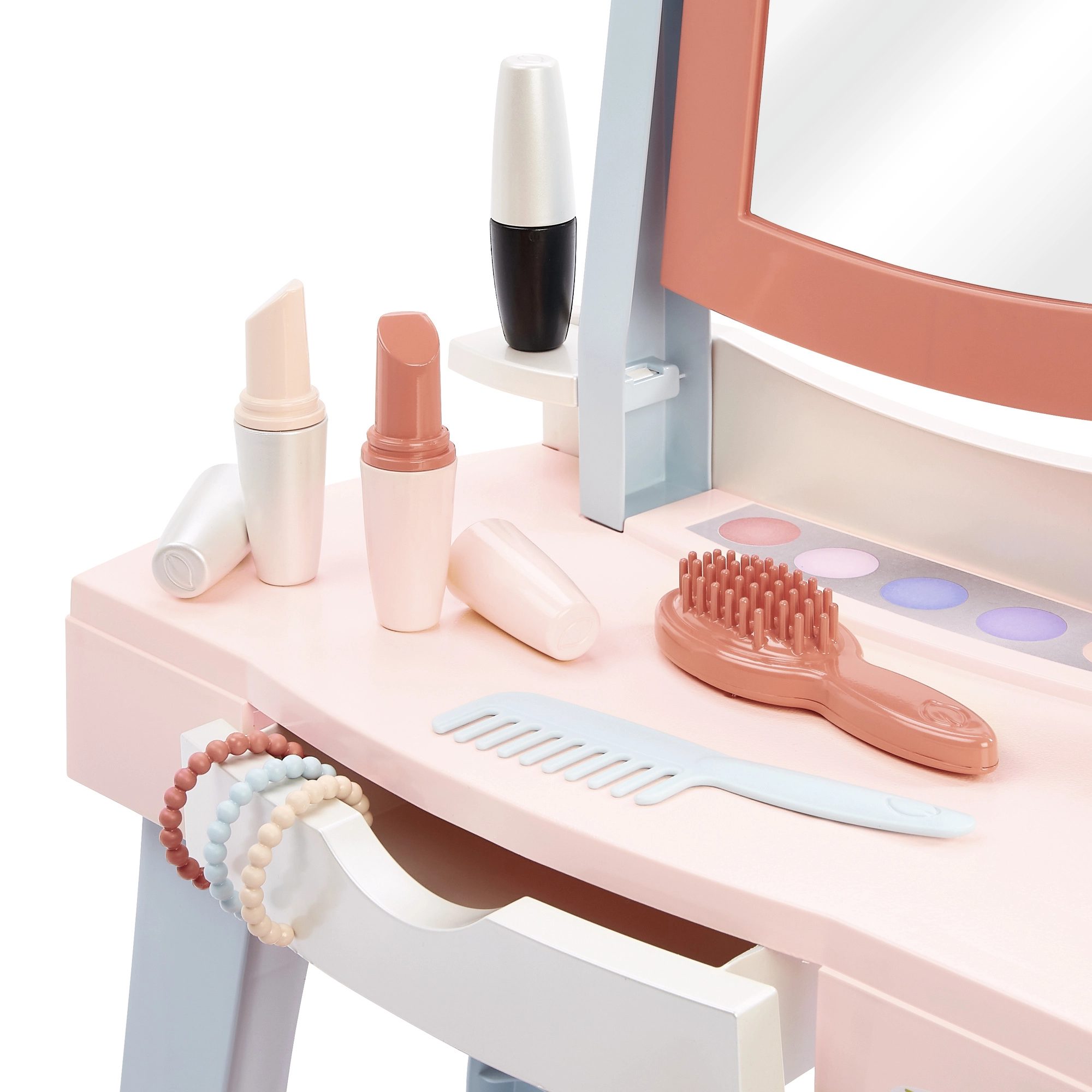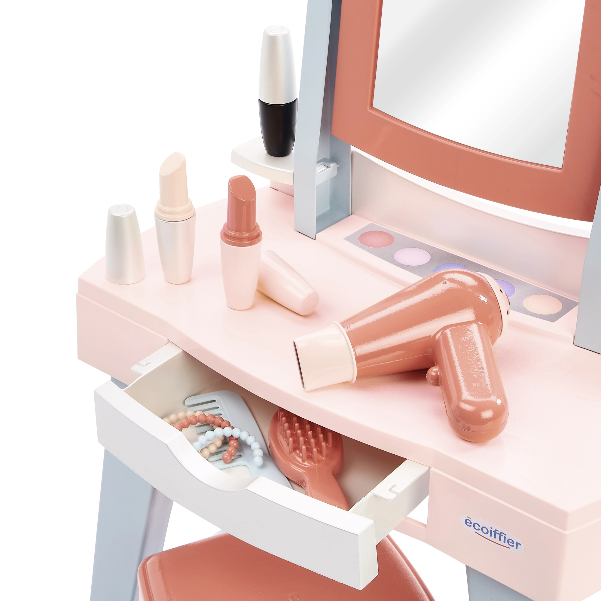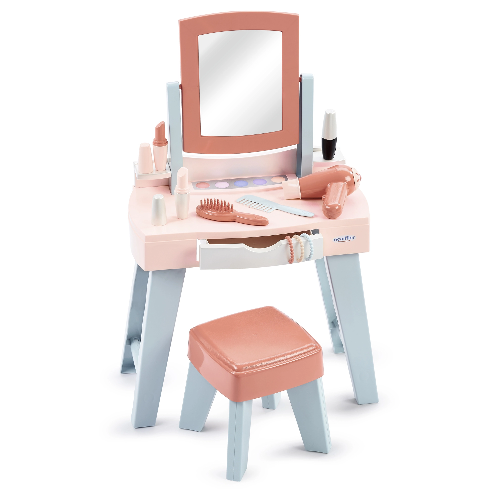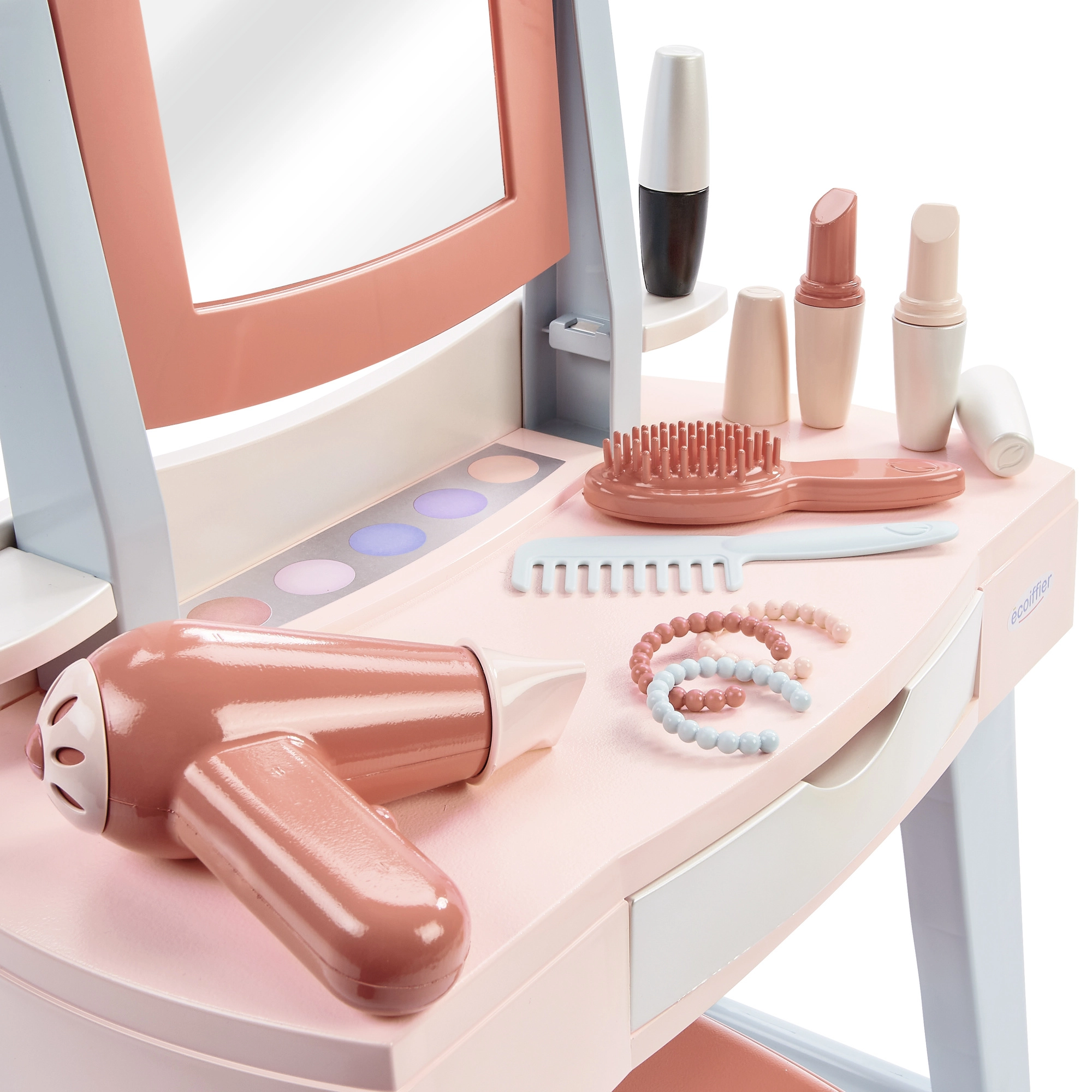 Integreret spejl til sminke- og frisureleg samt en udtræksskuffe til overskuelig opbevaring af alt tilbehør.