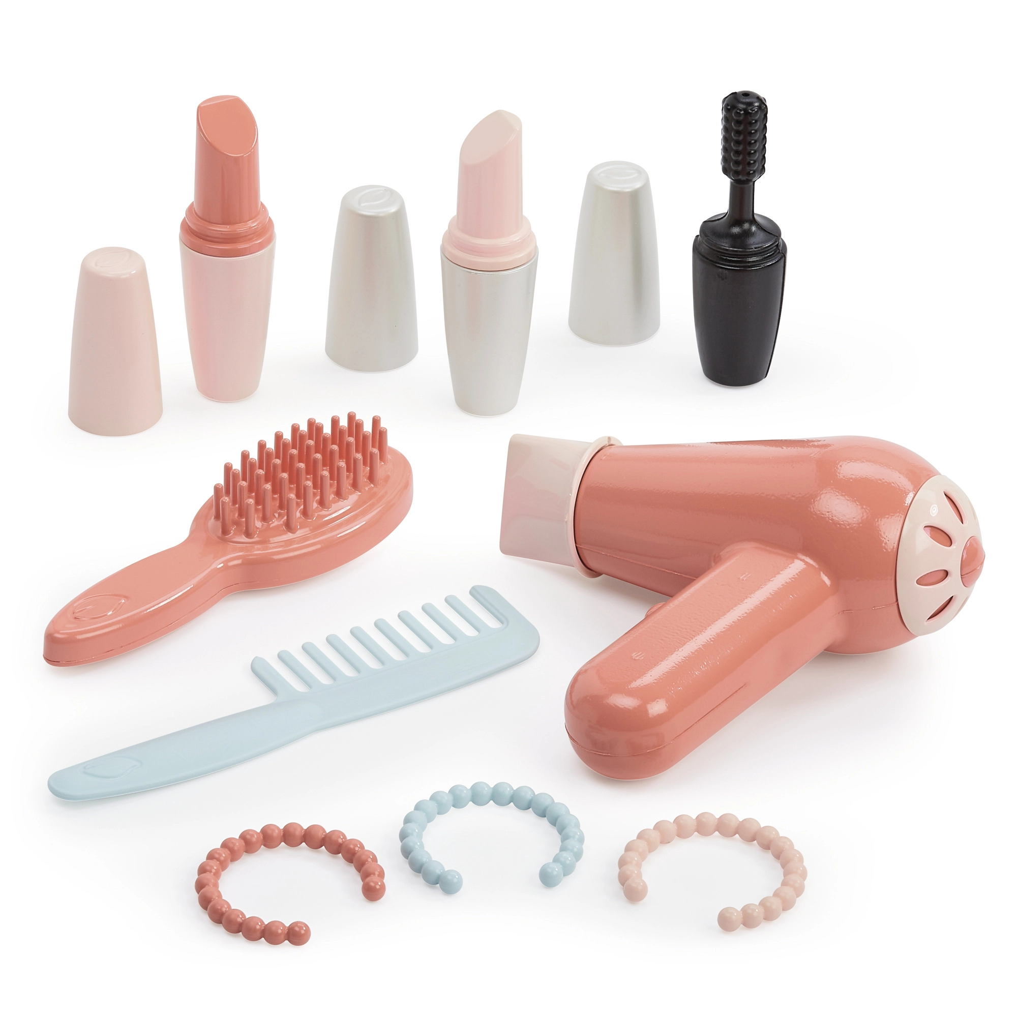 Indeholder kam, børste, børneføntørrer, “læbestifter”, “mascara”, palette og armbånd – ideelt til fantasifuld leg med skønhedssalon.