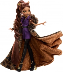 Lad din montre stråle med ikoniske Clawdeen Wolf inspireret af Monster High-universet. Kollektionen House of Wolf hylder den modige stil og det præcise håndværk – fra jacquardfrakken med imiteret pels til den raffinerede kjole med bælte og gyldne accenter. Dukken er led-delt, så du nemt kan skabe markante poser til perfekt udstilling.