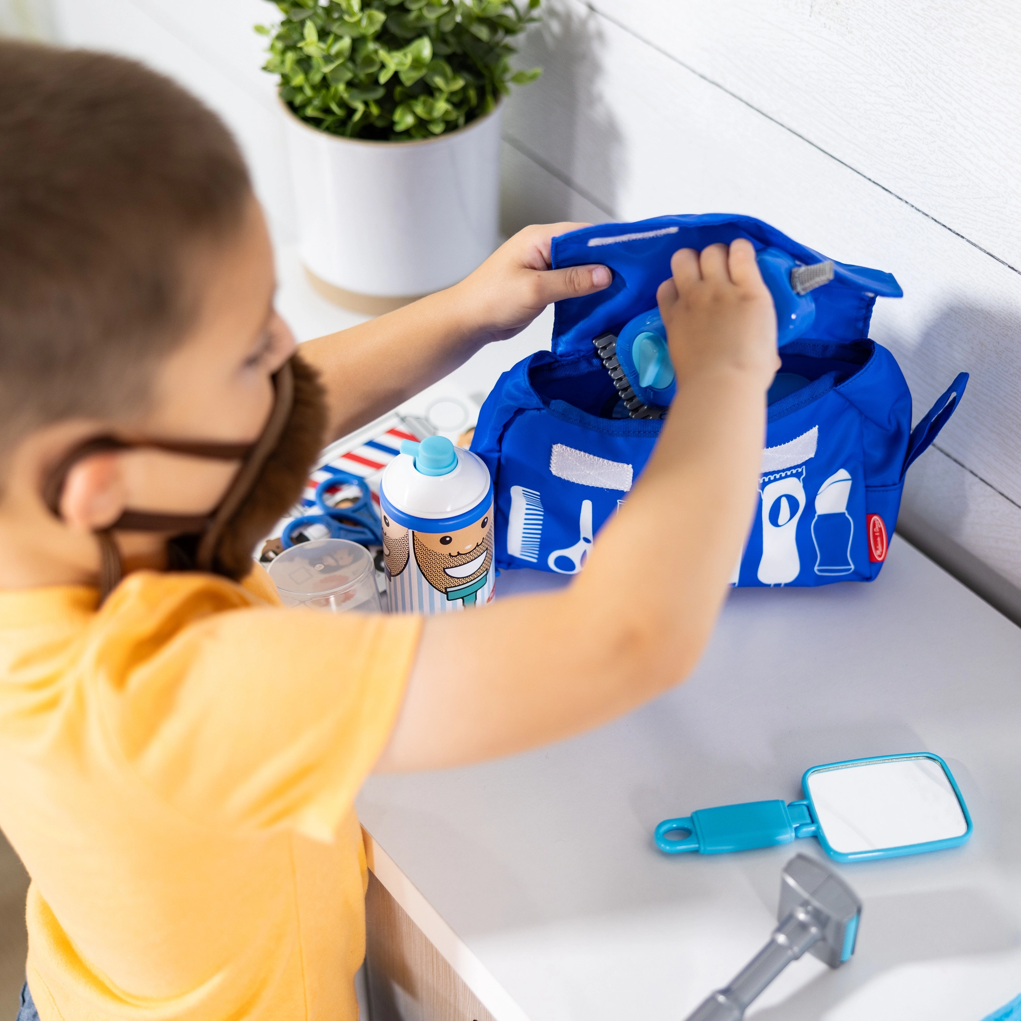Det sjove barbersæt til børn indeholder alt, hvad der skal til for realistisk leg som barber. Børn kan klippe, barbere, rede og style hår og skæg, udvikle kreativitet og finmotorik. Den praktiske lukbare taske holder alt realistisk tilbehør samlet og gør det nemt at tage med.