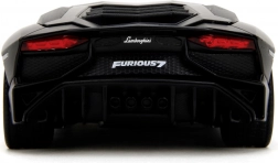 Nyd stemningen fra gaderæset med samlermodellen Shaw’s Lamborghini Aventador fra Jada Toys. Sort mat finish, korrekte proportioner og funktionelle elementer gør denne model til en iøjnefaldende hyldedekoration og et stærkt indslag i din FAST & FURIOUS-samling.