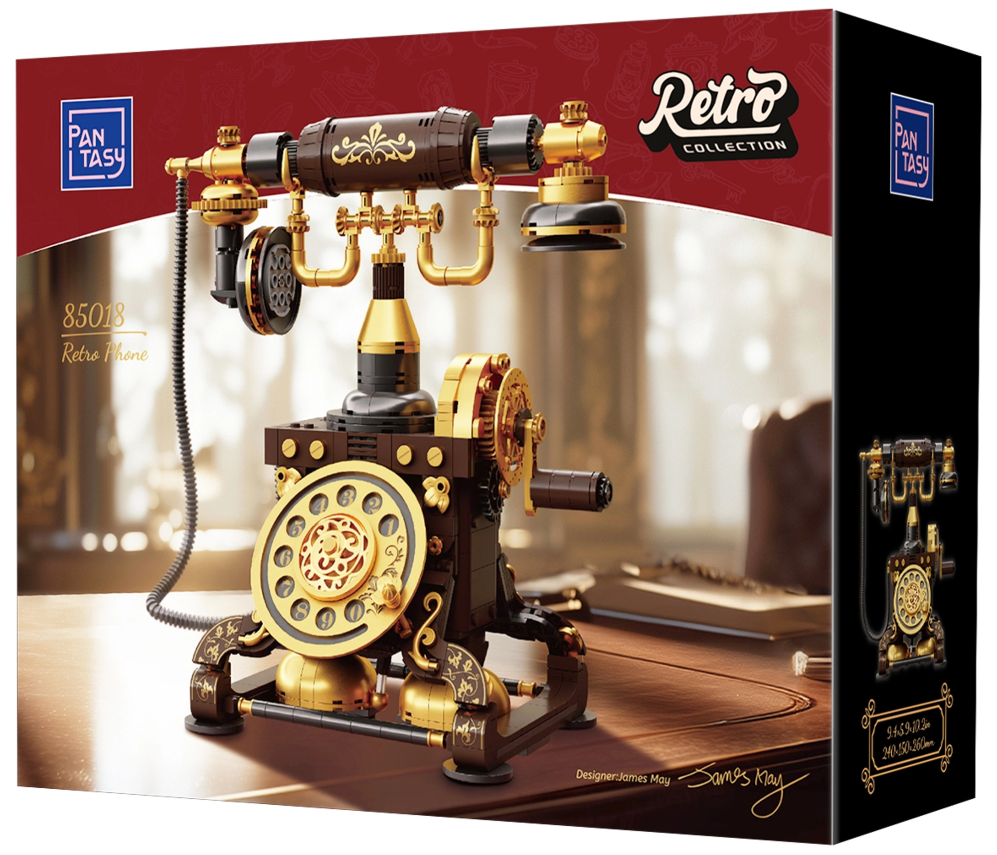 Dette unikke modelkit kombinerer retroæstetik med smarte mekaniske elementer. Når det er samlet, drejer skiven, håndsættet kan løftes, og krumtappen roterer via en separat mekanisme. De rige detaljer gør modellen til en iøjnefaldende interiørdekoration og en original gave til byggesætsentusiaster.