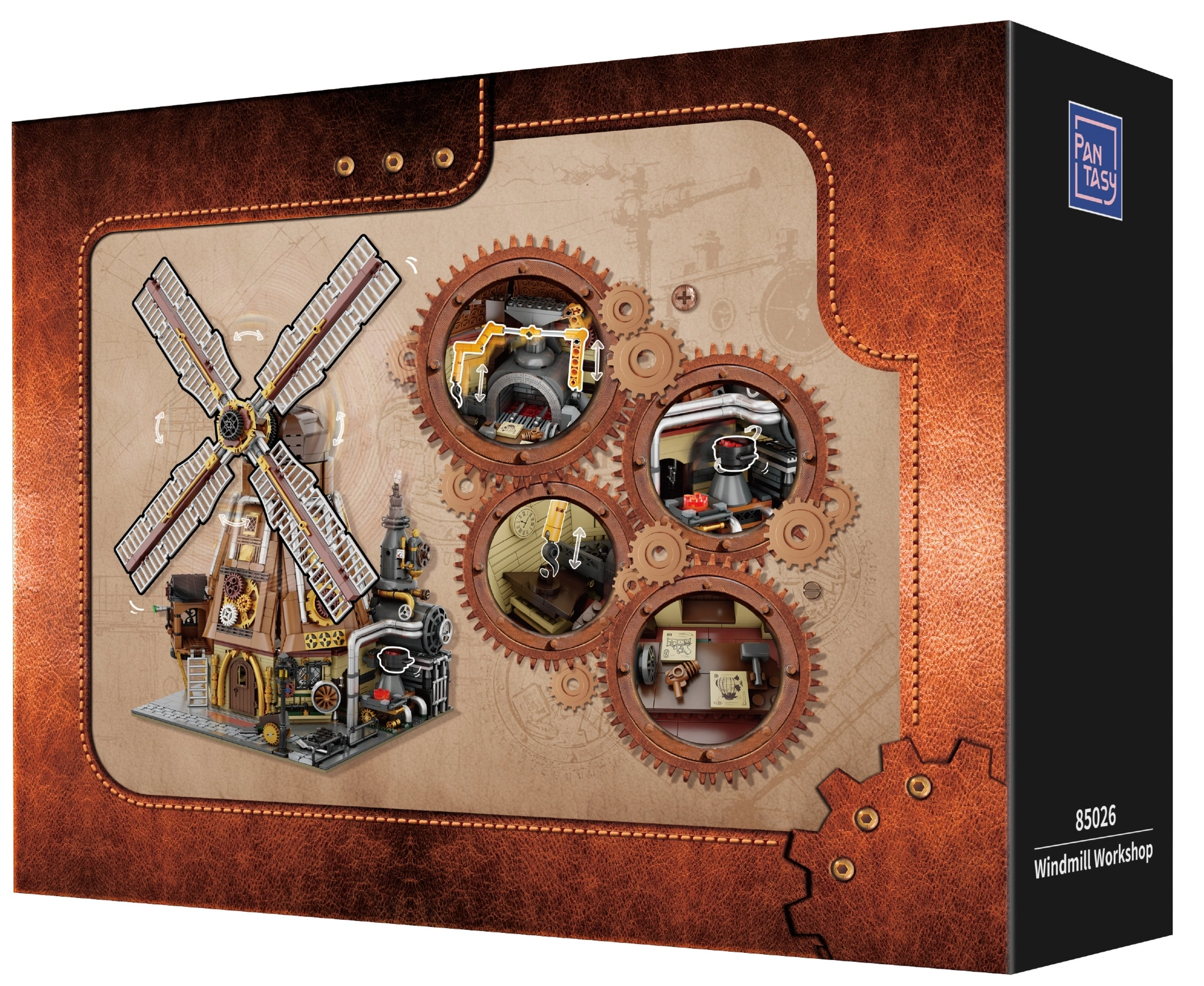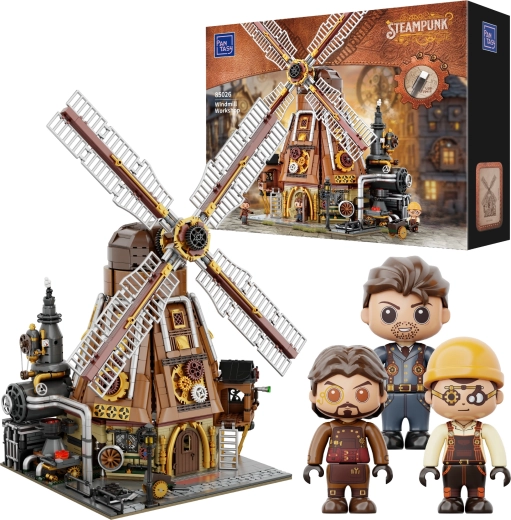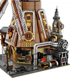 Træd ind i opfindelsernes og fantasiens verden med et steampunk-inspireret byggesæt, der kombinerer gennemtænkt konstruktion med smukke detaljer – rør, tandhjul, kedler og industrielle elementer. De roterende vinger på vindmøllen og andre bevægelige dele giver modellen et realistisk præg og gør både byggeri og udstilling til en sand oplevelse.
