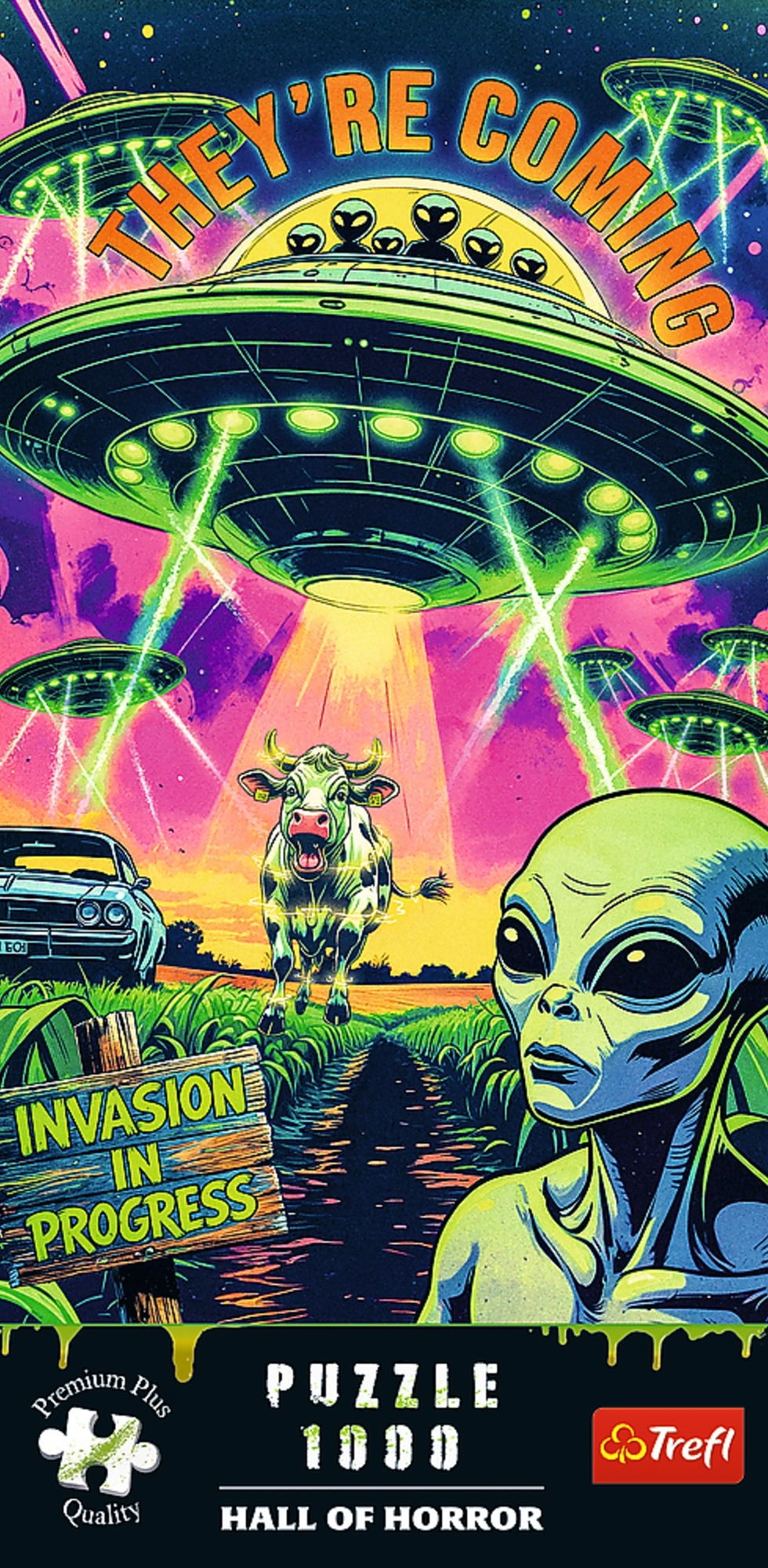 Træd ind i en verden af spænding og sci‑fi med Hall of Horror-kollektionen. Dette puslespil med invasion af rumvæsner tilbyder en intens visuel oplevelse og samtidig afslappende hygge under samlingen. Takket være den tykkeste kartonplade og unikke brikformer er samlingen flydende, og det færdige billede skarpt og stabilt.