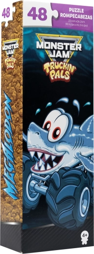 Oplev sjov med puslespillet MONSTER JAM Truckin' Pals, som efter samling afslører et dynamisk billede af monstertrucken Megalodon, der minder om en haj. Takket være 48 solide brikker er puslespillet ideelt til børn fra 4 år, som lige er ved at lære at lægge puslespil.
