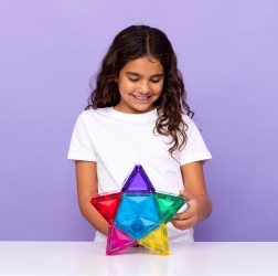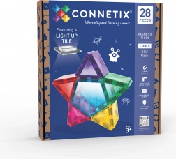 CONNETIX Light Star Pack giver børn uendelige byggemuligheder – fra stjerner og mosaikker til 3D-tårne, broer og paladser. Takket være de stærke magneter holder konstruktionerne solidt, og de gennemsigtige farver lyser smukt, især i kombination med den lysdende flise, som giver bygningerne en unik effekt.
