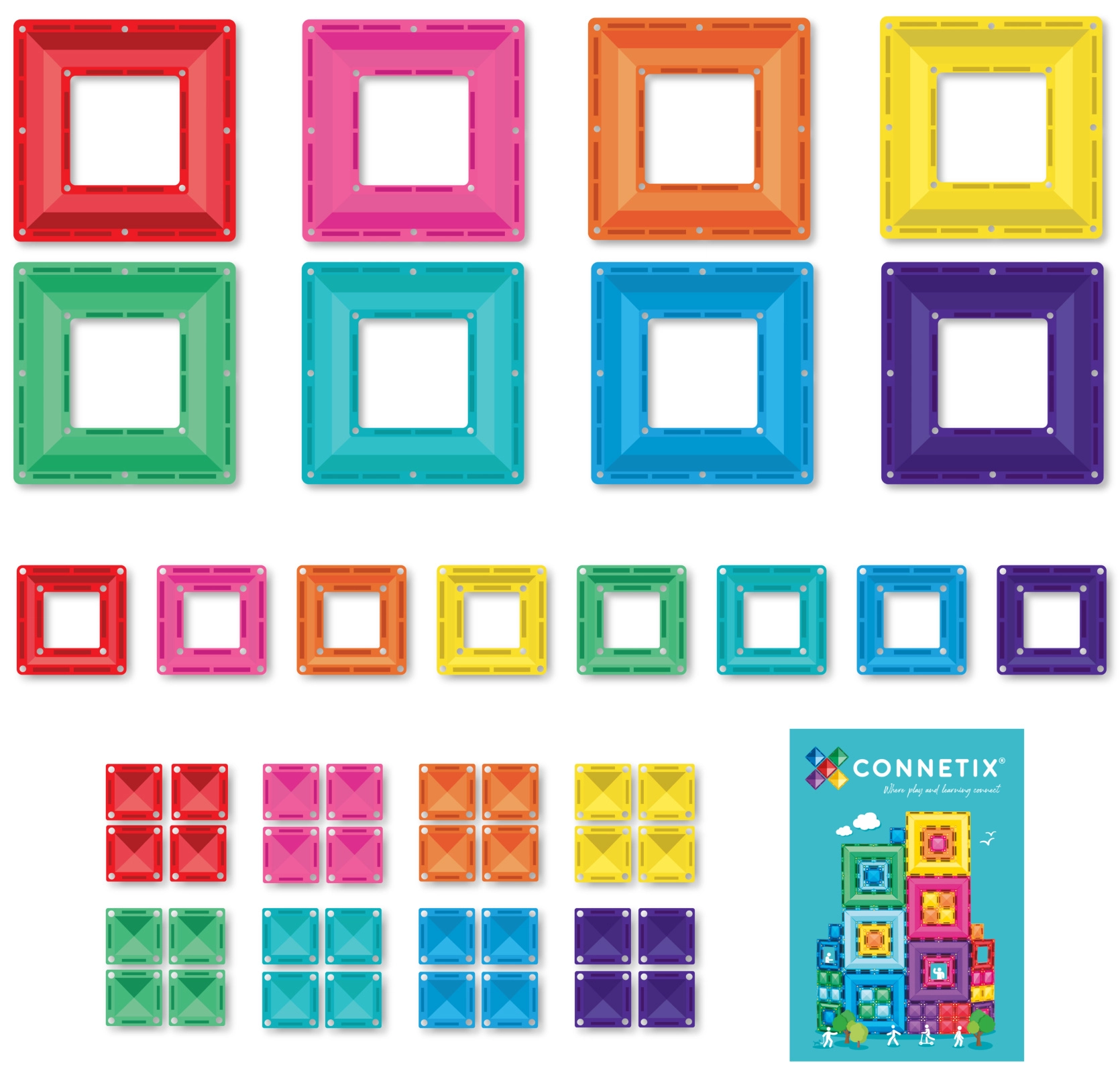Sættet indeholder portalrammer til markante arkitektoniske elementer og praktiske små kvadrater til detaljerede konstruktioner. Perfekt til leg derhjemme, børnehaver, Montessori-aktiviteter og sanseintegrationsterapi. Delene er kompatible med andre CONNETIX-sæt, så du kan udvide din samling løbende.