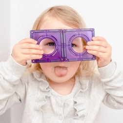 Stærke, nittede magneter tiltrækker fra alle sider, så fliserne sidder sikkert – selv i høje konstruktioner. Børn forstår let principperne for symmetri og balance.