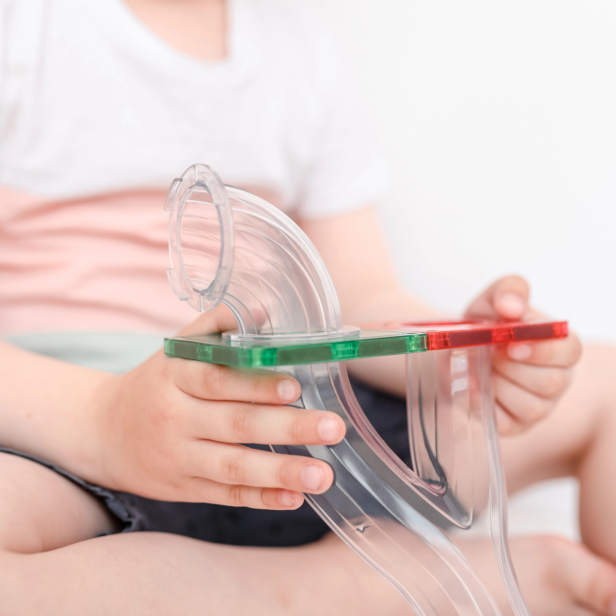 At bygge baner træner finmotorik, hånd‑øje‑koordination og rumlig tænkning. Ideelt til fri leg, gruppeprojekter og Montessori‑aktiviteter.