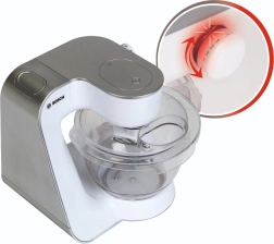 En tro kopi af en ægte BOSCH køkkenmaskine motiverer børn til at efterligne voksne og støtter kreativ leg i køkkenet.