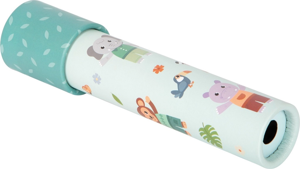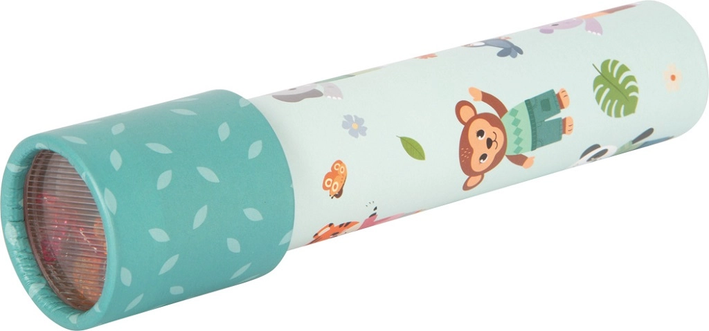 Opdag en verden af farver og former med børnekalejdoskopet SMALL FOOT – Junglevenner. Den lette, nemt grebbare kikkert med sød dyredekoration skaber ved drejning uendelige farverige mønstre, som styrker visuel perception, fantasi og koncentration. Fremstillet af materialer med FSC-certificering – et skånsomt valg for både børn og natur.