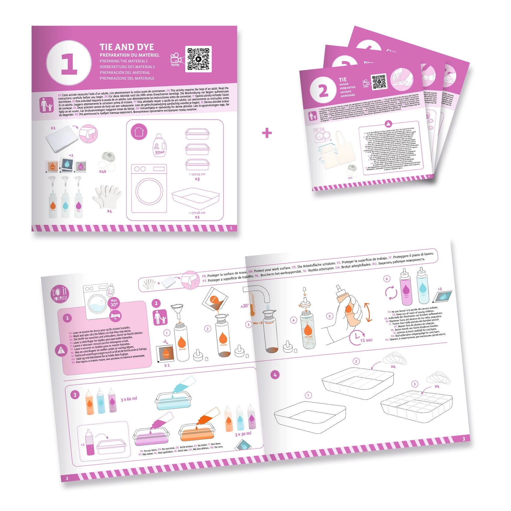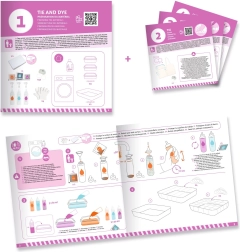 Dette komplette DIY-batiksæt forvandler almindelige tekstilaccessories til stilfulde originaler. Takket være klare trin-for-trin-instruktioner kan både børn og begyndere mestre binding og farvning. Skab spiraler, striber, hjerter eller marmoreffekter og udtryk din kreativitet.