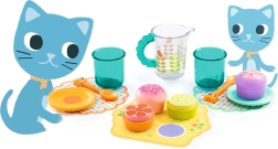 Dette te-sæt med kattemotiv er perfekt til den første rolle som vært eller værtinde. Det stimulerer fantasi, finmotorik og læring gennem leg – fra at hælde drikkevarer op til at servere lækkerier. Takket være de livlige farver og afrundede former er det venligt og sikkert for små hænder.