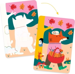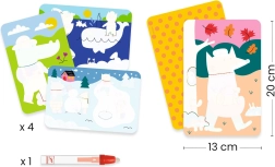 Sættet indeholder fire robuste kartontavler med søde dyr i forårs-, sommer-, efterårs- og vinterscener samt en praktisk vandpen. Takket være de afrundede hjørner og det holdbare materiale er kortene velegnede til små børnehænder. Perfekt til rejser, venteværelset og hyggestunder derhjemme – rent, hurtigt og genanvendeligt.