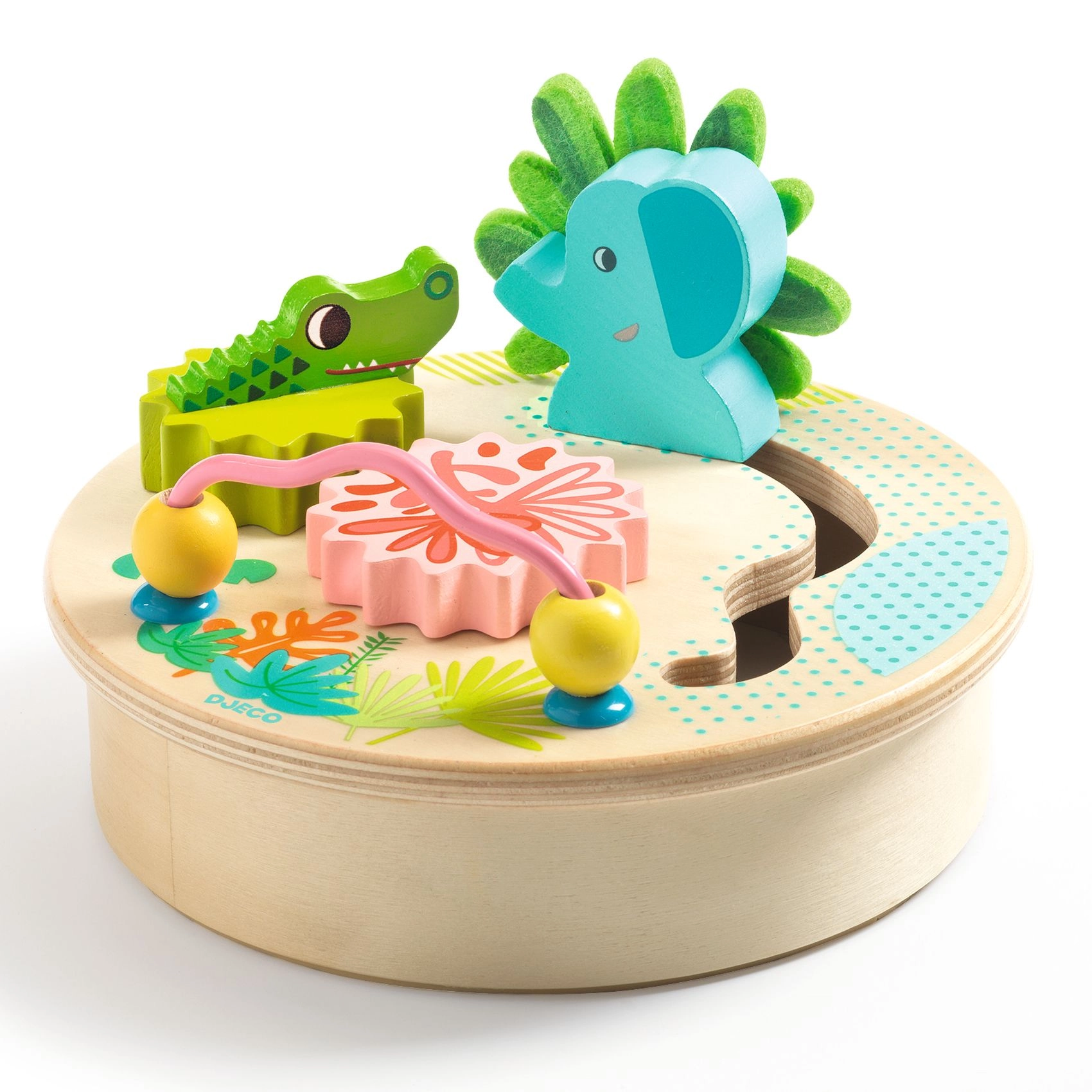 Det træbaserede aktivitetsbord DJECO MultiSmall er designet til at give de mindste glæde ved at udforske og samtidig støtte deres færdighedsudvikling. Med de mange forskellige legeelementer træner børn finmotorik, hånd–øje-koordination og logisk tænkning. De kompakte mål og de stabile ben sikrer tryg leg allerede fra 12 måneder.