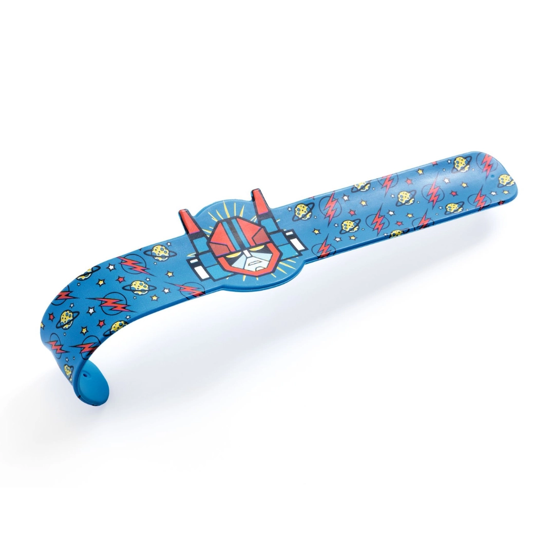 Opdag de legesyge slap-armbånd fra DJECO med motiver af superhelte, dinosaurer, tigre og robotter. Takket være den fleksible metalbøjle med slidstærk plastbelægning snor armbåndet sig selv omkring håndleddet med et let “knak”. Børn vil elske det for sikker og hurtig påsætning samt markant design.