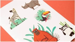 - Kraftige farver og originale illustrationer med motiver af løveunger og jungle