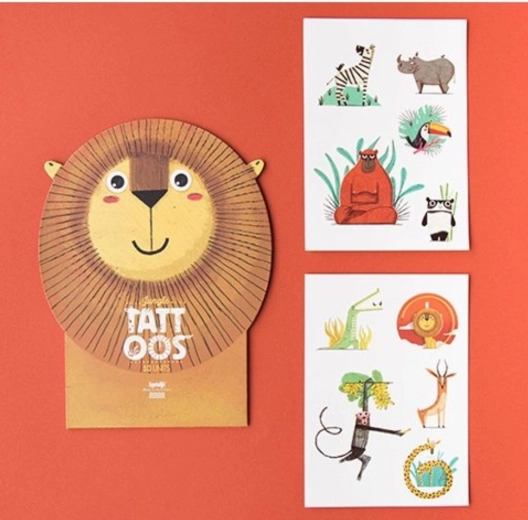 Oplev et legende sæt midlertidige tatoveringer med motiv af en løveunge fra LONDJI. Takket være de markante farver og fine linjer får børn et stilfuldt og sjovt tilbehør, der stimulerer deres fantasi og legeglæde. Tatoveringerne overføres nemt til huden med vand og fjernes lige så let.