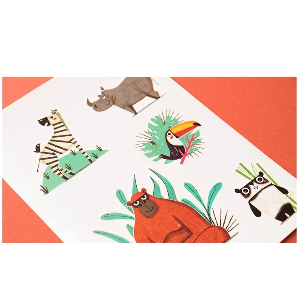Forvandl børn til små savannekonger med de originale midlertidige tatoveringer fra LONDJI. Sættet byder på farverige motiver af løveunger og jungle, nem påføring og sikker sammensætning for børns sarte hud – ideelt til fester, udflugter og kreative lege.