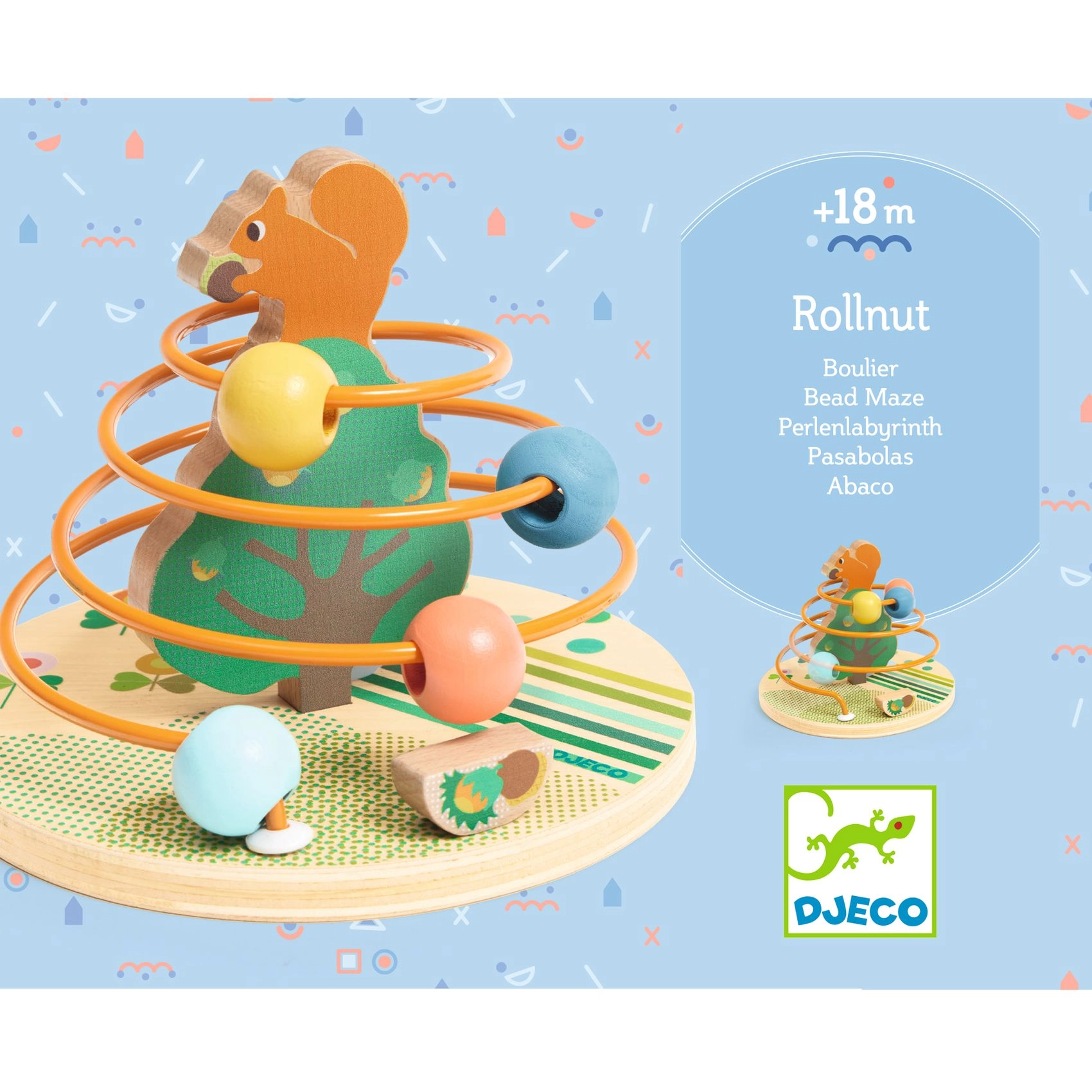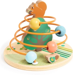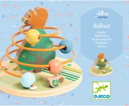 Opdag den sjove træperlespiral RollNut fra DJECO, ideel til børn fra 18 måneder. Børn skubber og drejer farverige perler langs stangen i cirkulære bevægelser og forbinder egern med hasselnødder. Legetøjet understøtter finmotorik, hånd–øje-koordination og sansestimulering.