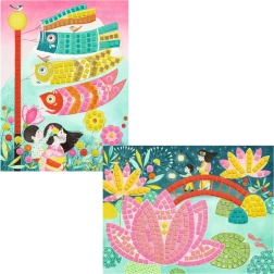 Oplev den japanske æstetik med dette kreative sæt til børn, som forvandler to illustrerede forlæg til strålende mosaikker ved hjælp af skumklistermærker og glitrende folier. Sættet udvikler finmotorik, tålmodighed og kreativitet, og resultatet er skinnende mosaikbilleder velegnede som vægpynt på børneværelset.