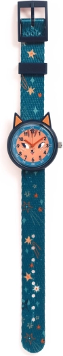 DJECO-uret med egernmotiv kombinerer et legesygt udseende med praktiske funktioner, der gør det lettere for børn at orientere sig i tiden. Takket være den overskuelige urskive med tydeligt læselige tal lærer børn nemt at læse klokken. Den lette konstruktion og den behagelige rem sikrer komfort hele dagen.
