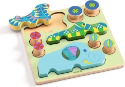 Sødt træindsætningspuslespil til de mindste, som faktisk kan “køre afsted”, når det er samlet! Børnene har det sjovt med dyremotiver i små biler og udvikler samtidig finmotorik, logisk tænkning og hånd–øje-koordination. Den høje kvalitet fra Djeco og sikre materialer sikrer lang holdbarhed og masser af legeglæde.