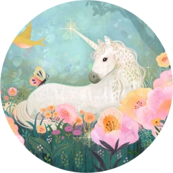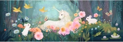 - Magisk motiv: eventyrskov og enhjørninger i rige farver.