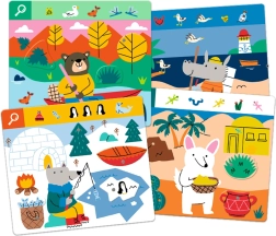 - Rige illustrationer: temascener (hav, skov, ørken, Arktis, strand) med klare farver.