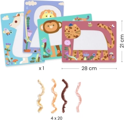 Sjovt kreativt sæt til børn fra 3 år, hvor de kan lave søde dyr ved hjælp af farvede uldstrimler og velcro. Nemt at bruge, behageligt at røre ved og fantastisk til at udvikle finmotorik og fantasi.