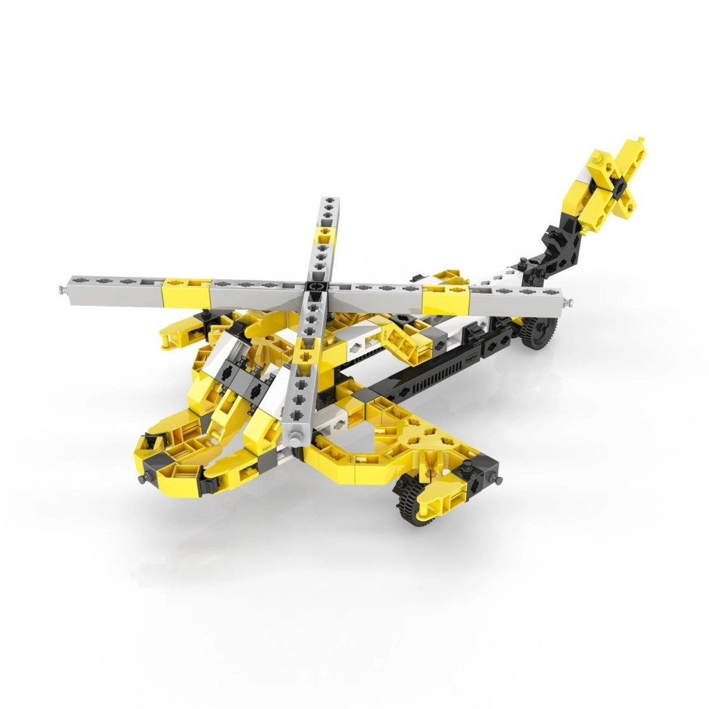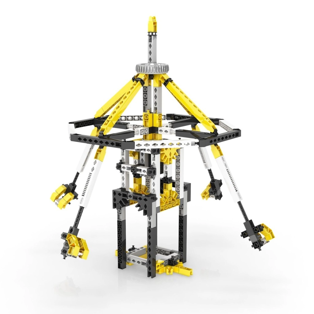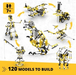 Dette alsidige byggesæt giver børn både underholdning og læring i ét. Fra ét sæt dele bygger du biler, helikoptere, kraner, maskiner og mekaniske mekanismer. Den integrerede motor til 2× AAA-batterier (medfølger ikke) giver modellerne bevægelse og lærer børn grundlæggende mekanik.
