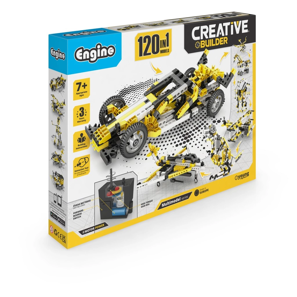 Opdag uendelige muligheder med den kreative byggesæt Engino Creative Builder, som gør det muligt at samle op til 120 modeller i 1. Takket være motor med retningsskifter, 3D-vejledninger i kidCAD-appen og kompatibilitet med andre ENGINO-sæt udvikler børn fra 7 år deres logiske tænkning, kreativitet og tekniske færdigheder.