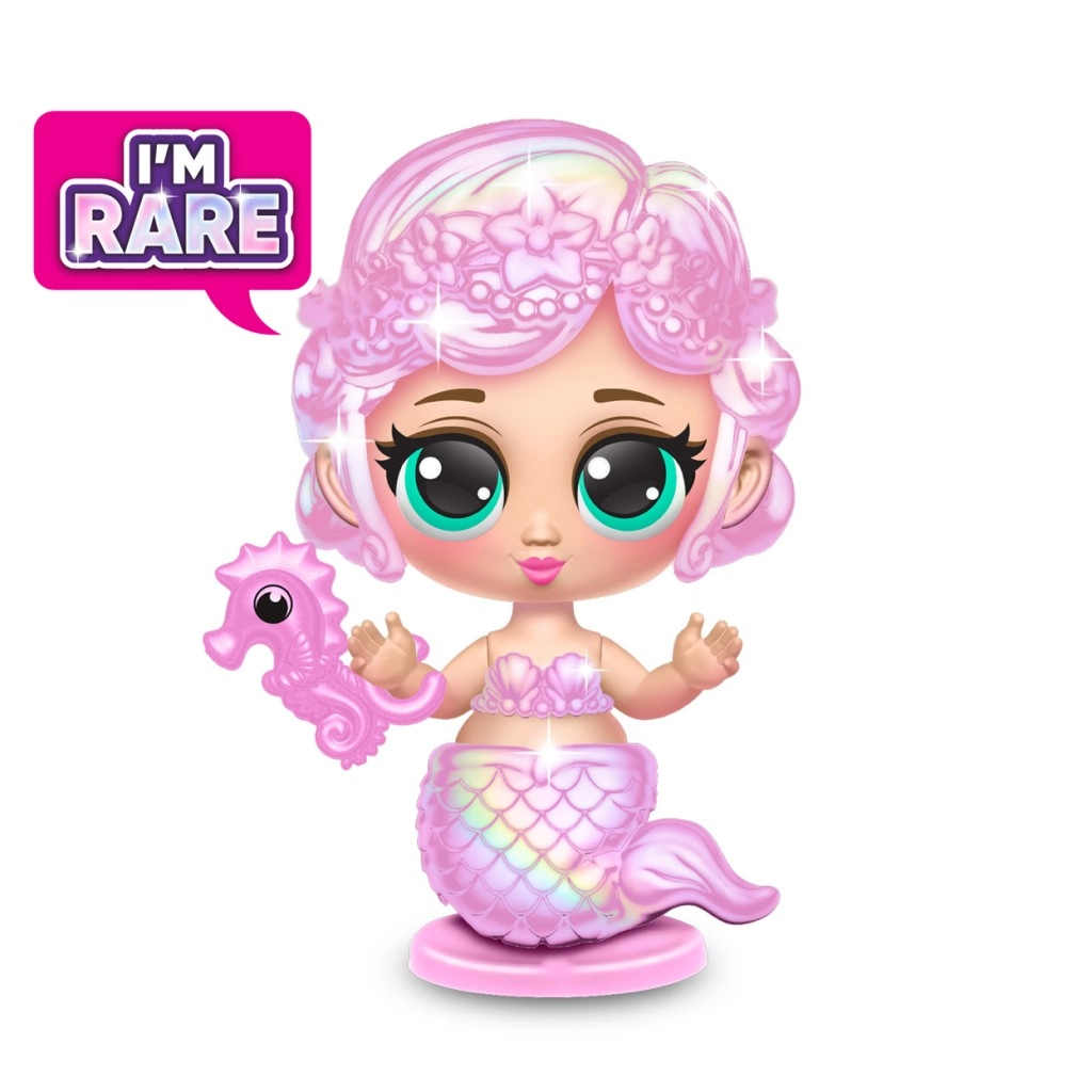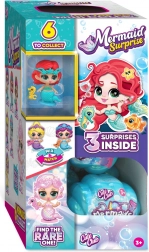 Hver muslingeformet pakke gemmer på 3 overraskelser, som udvider havfrue-universet og styrker samlerglæden. Farvekombinationerne af hår, kroner og haler er gennemtænkte og harmoniske – for eksempel en blåhåret havfrue med lyserød hale eller en gulhåret med lilla hale og krone med havmotiver.