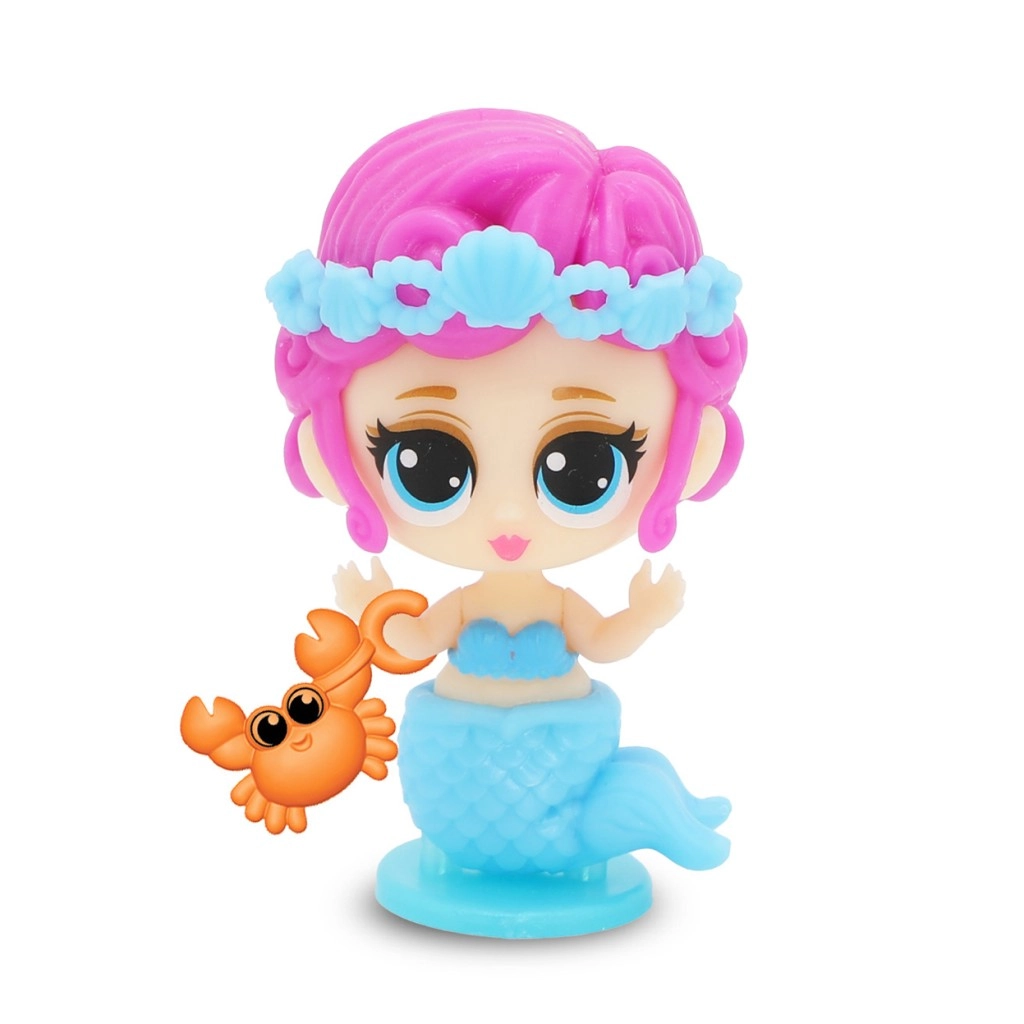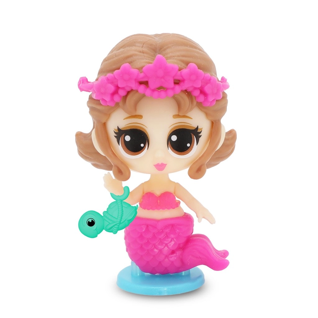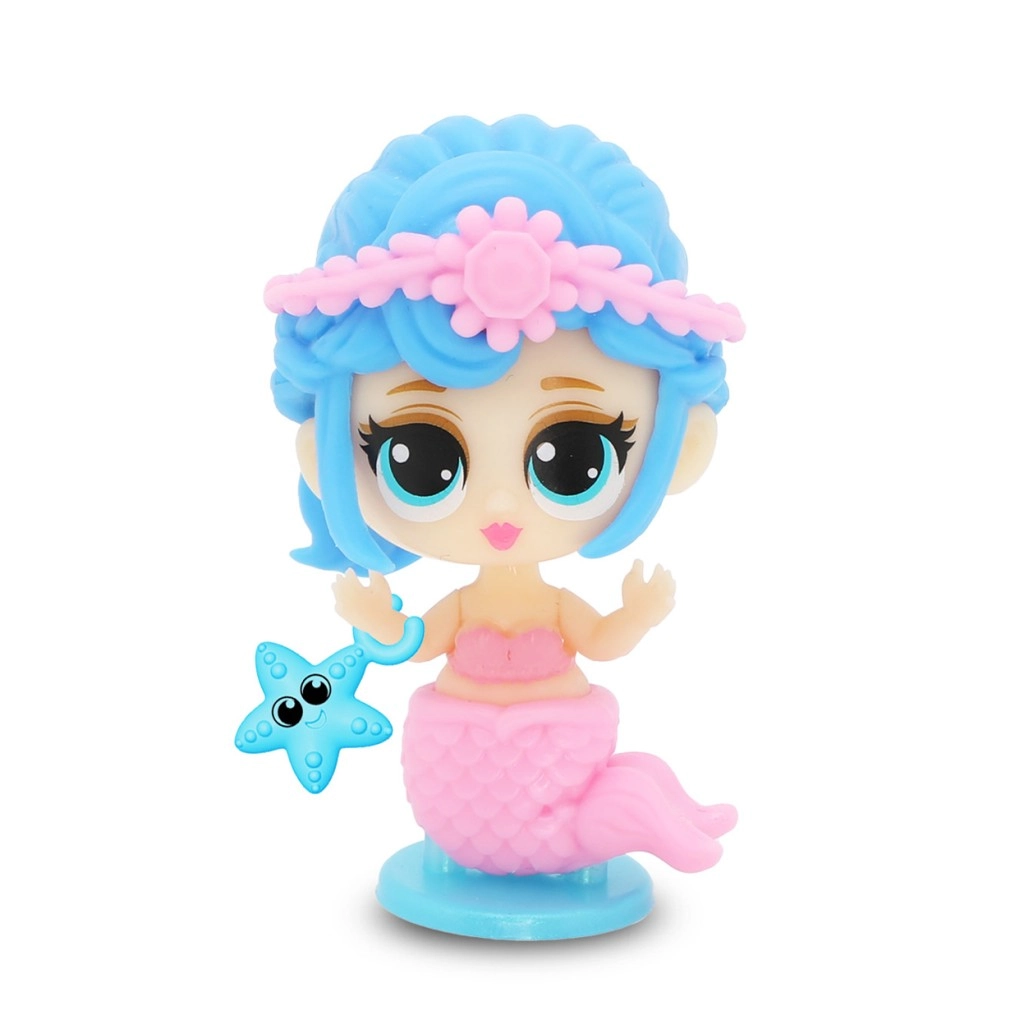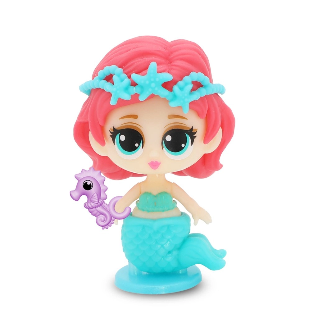 Hver figur har sine egne farver, frisure og tilbehør – fra søstjerne til krabbe. Perfekt til bytning og udvidelse af samlingen.