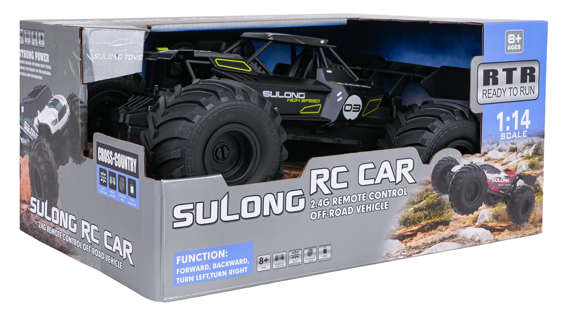 Oplev terrænsjov med denne RC-crawler i skala 1:14. Takket være metal karrosseri, antikollisionskonstruktion og affjedret ophæng klarer den ujævnt underlag og forhindringer. Store gummidæk giver fremragende trækkraft, og 2,4 GHz styring sikrer jævn kontrol i alle retninger. Ideel til børn fra 8 år.