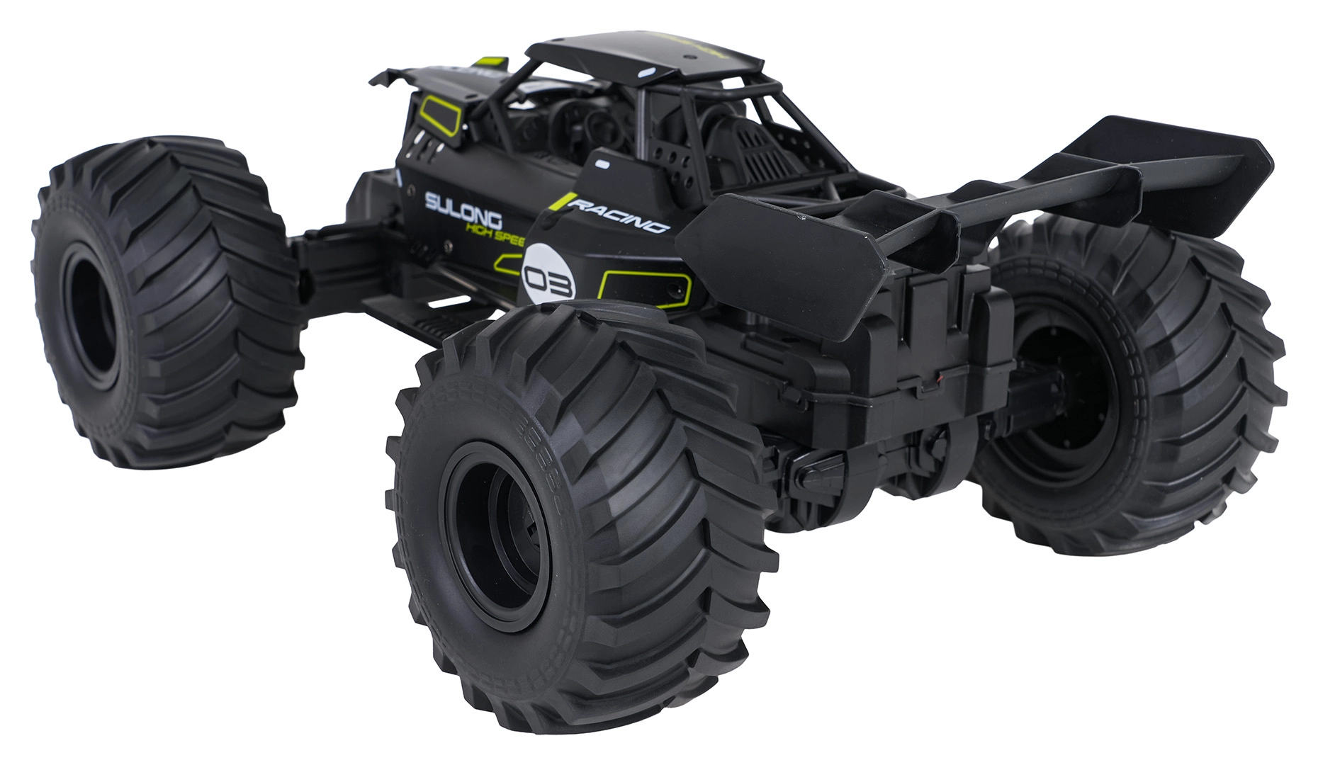 Store terrændæk med dybt mønster håndterer grus, græs og ujævnheder. 2,4 GHz-systemet eliminerer forstyrrelser, så du kan køre med flere biler samtidigt. Modellen styres nemt i alle retninger og er et godt valg for unge entusiaster fra 8 år.