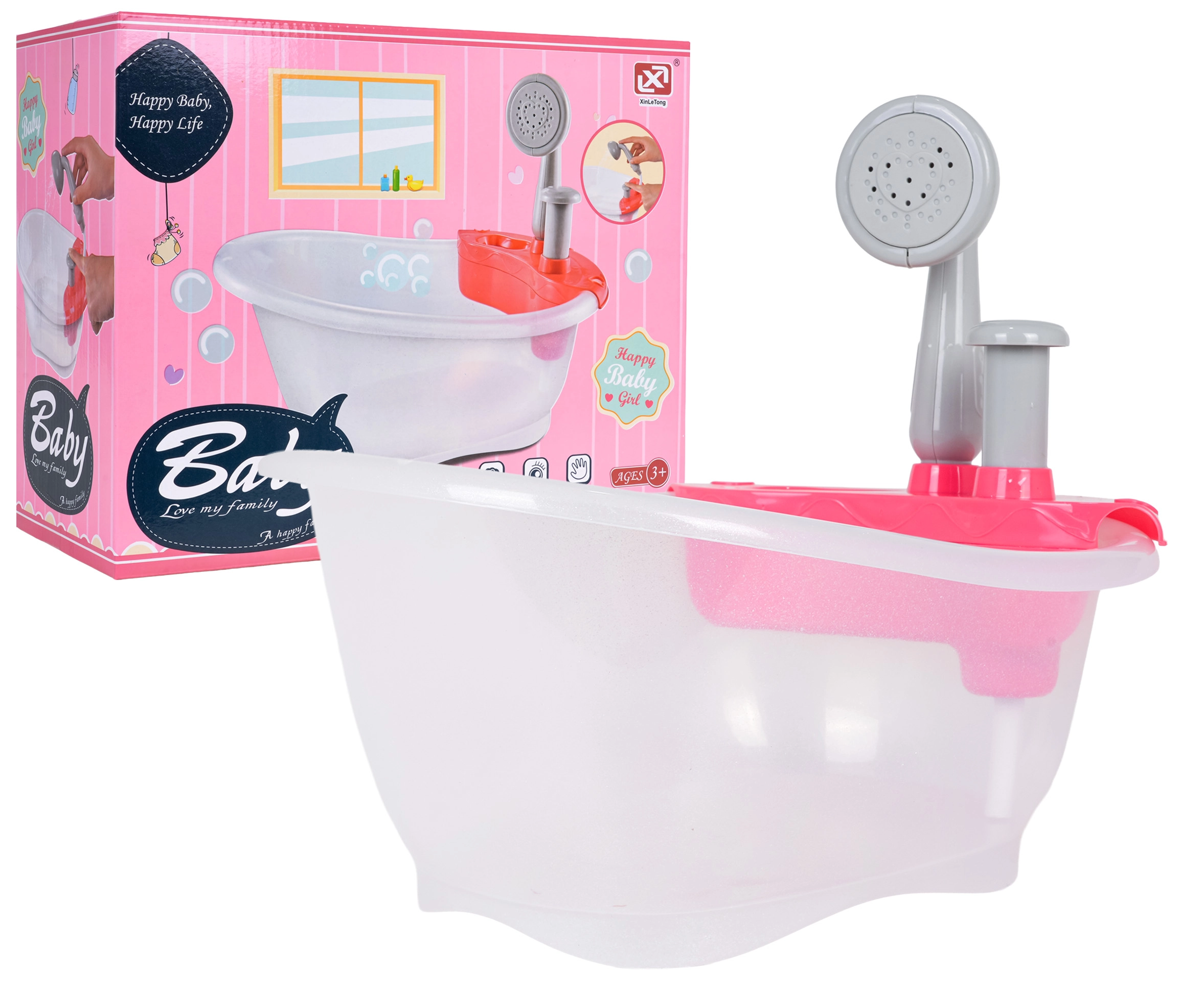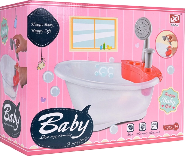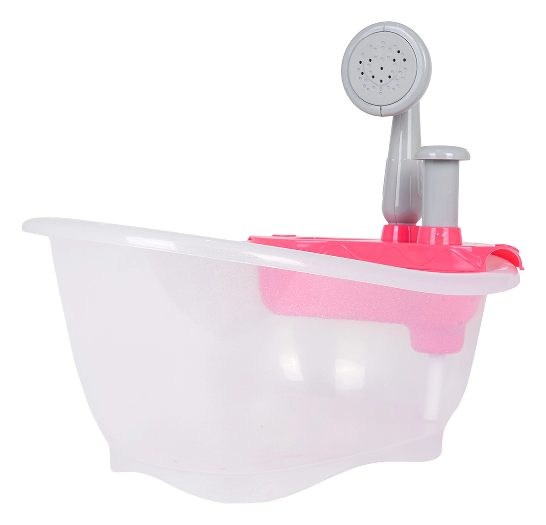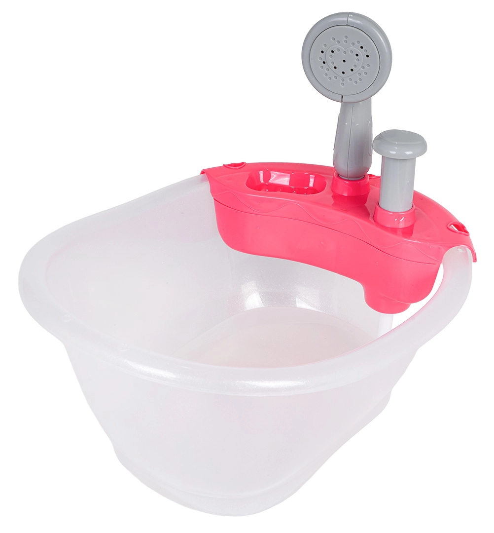 Denne badebalje til dukker giver børn en realistisk badeleg. Fyld blot baljen med vand og tryk på pumpen – der løber rigtigt vand fra bruseren, hvilket styrker fantasien og finmotorikken.